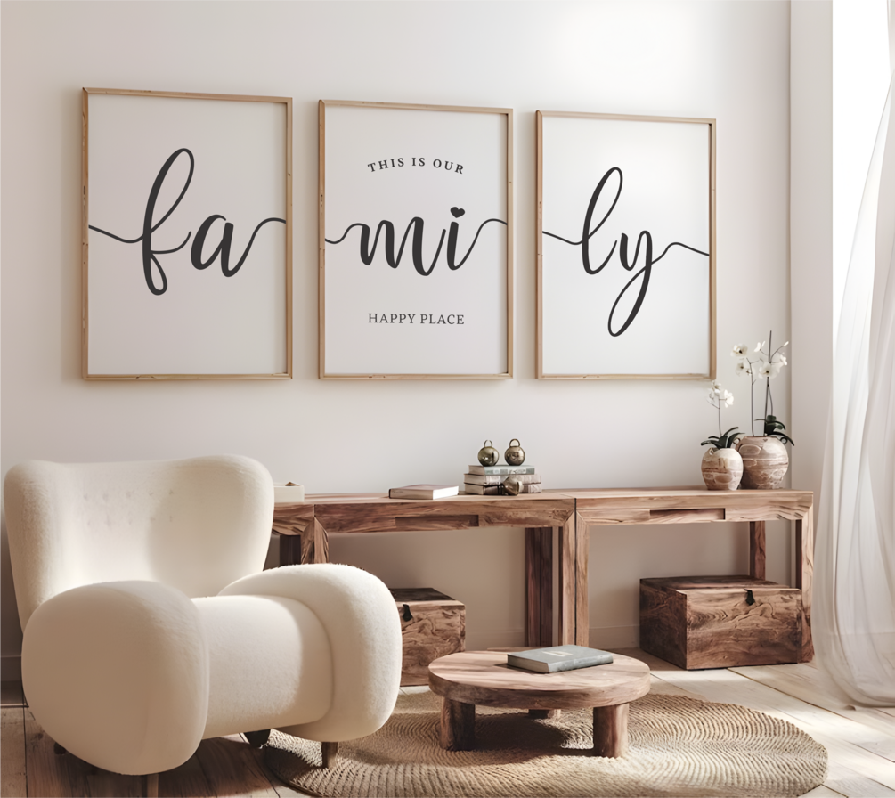 A set of three posters "FA | MI | LY | THIS IS OUR FAMILY | HAPPY PLACE" - Choose your size!