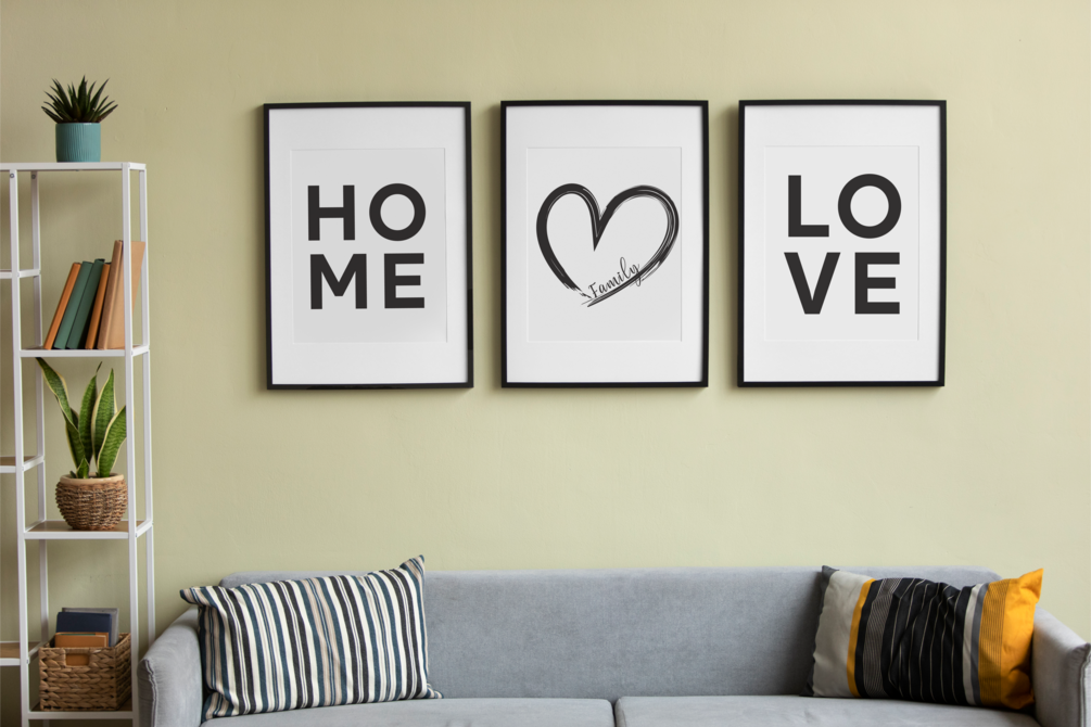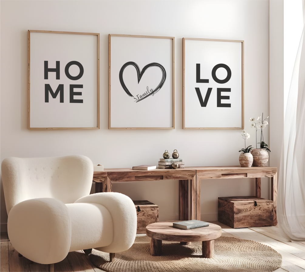 A set of three posters "HOME | ♡ | LOVE" - Choose your size!